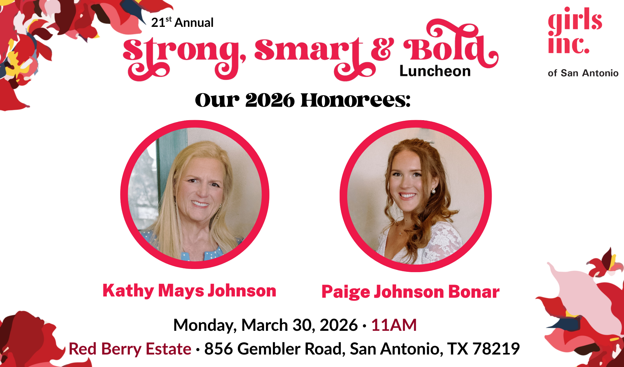 These are just a few of the characteristics of the women Girls Inc. is honoring at the 21st Annual Girls Inc. of San Antonio: Strong, Smart, and Bold Luncheon.